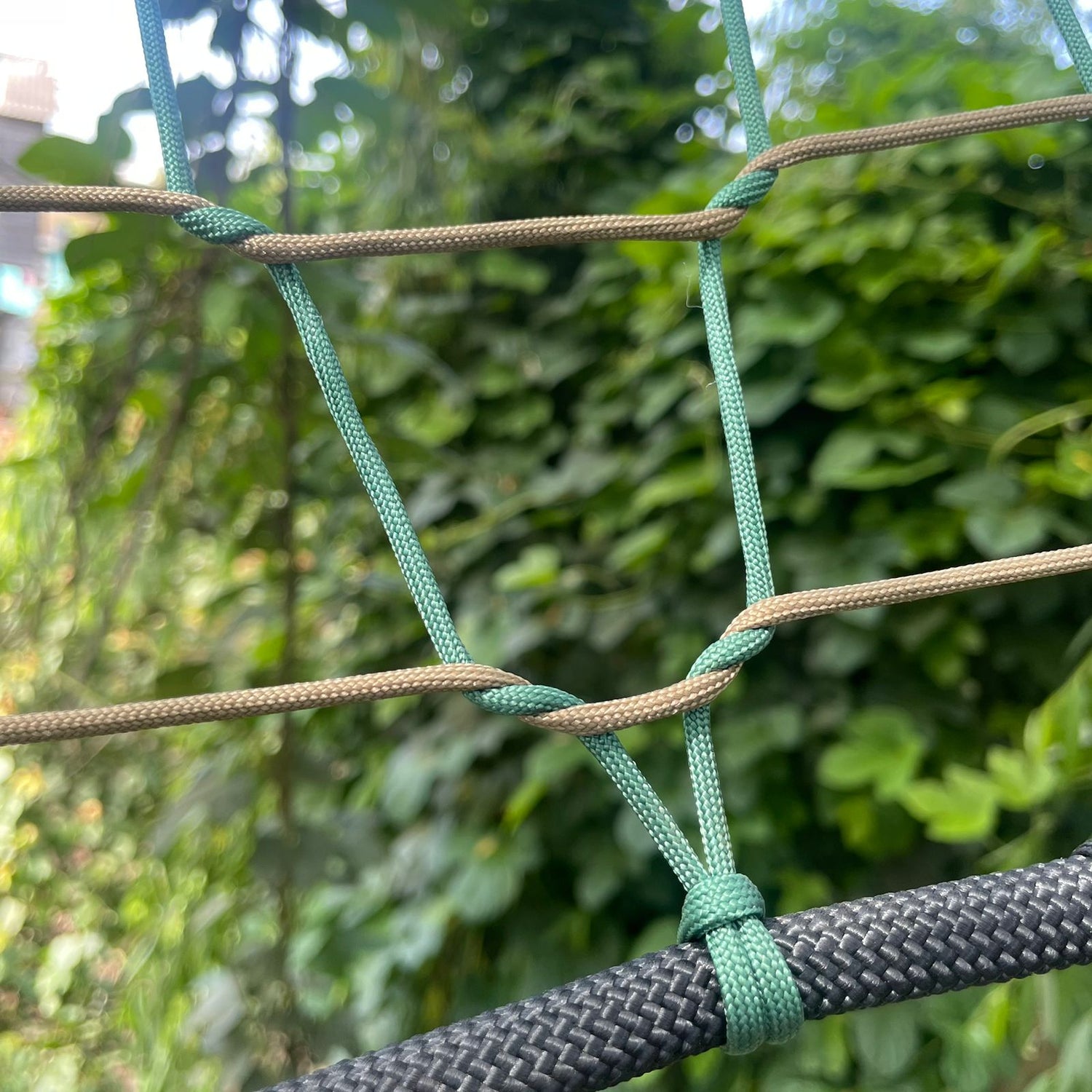 Red para alturas a 6 metros, con capacidad para 4 personas en paracord negro y verde.