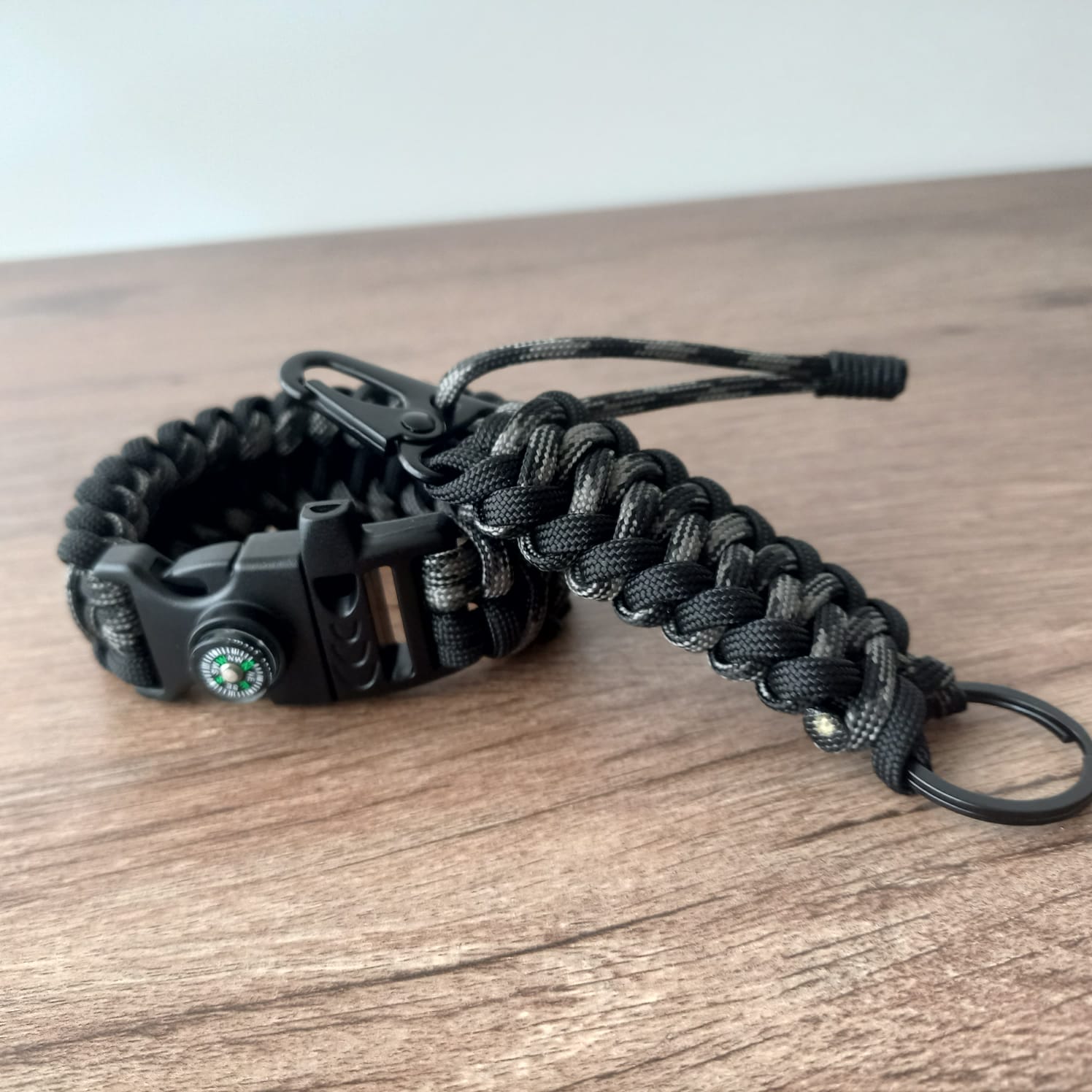 Pack Camo Black Pulsera de Supervivencia mas Llavero con Mosqueton
