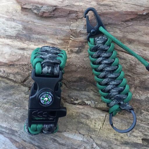 Pack Camo green Pulsera de Supervivencia mas llavero mosqueton